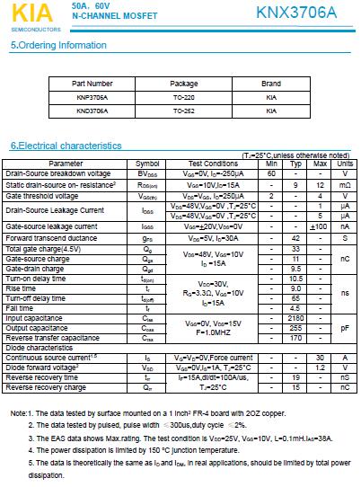 MOS管 3706 50A/60V 新產(chǎn)品上線 歡迎咨詢-規(guī)格書詳情 免費(fèi)送樣-KIA MOS管