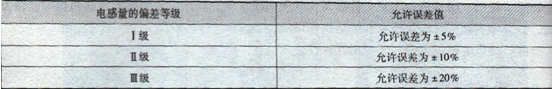 (3)允許誤差:電感量的實際值與標稱之差除以標稱值所得的百分數(shù),,由感量差等級及允許誤差值如表2-7所示。