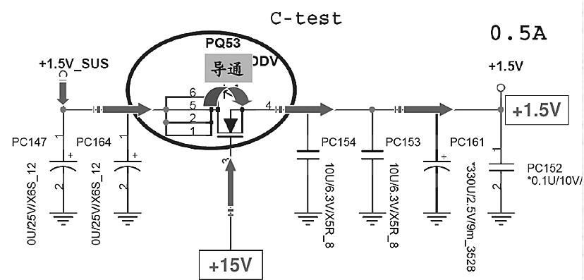 4.mos開關(guān)完成電壓通斷的例子由+1.5V-SUS產(chǎn)生+1.5V電路