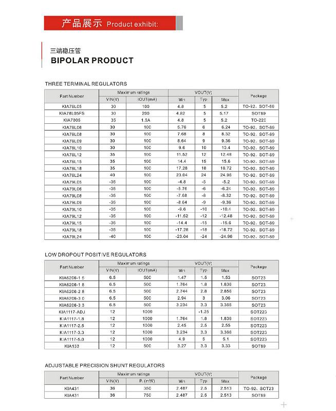 KIA半導體專業生產MOS管場效應管廠家(國家高新技術企業)成立于2005年,公司成立初期就明確立足本市場,研發為先導,了解客戶需求,運用創新的集成電路設計方案和國際同步研發技術,結合中國市場的特點,向市場推出了BIPOLAR,CMOS,MOSSFET等電源相關產品,產品的穩定性,高性價比,良好的服務,以及和客戶充分的技術,市場溝通的嚴謹態度.