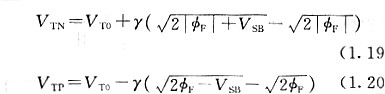 式中,VTO是VSB=0時(即不發牛襯底偏置效應時)的閾值電壓。它的極性在NMOS中是VTO>0,關于PMOS是VTO