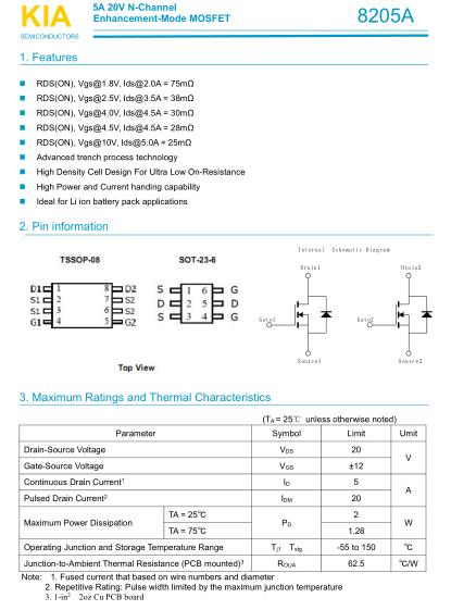 電池保護(hù)板-工作原理應(yīng)用領(lǐng)域與元件參數(shù)表-KIA mos管
