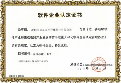 軟件企業認定證書