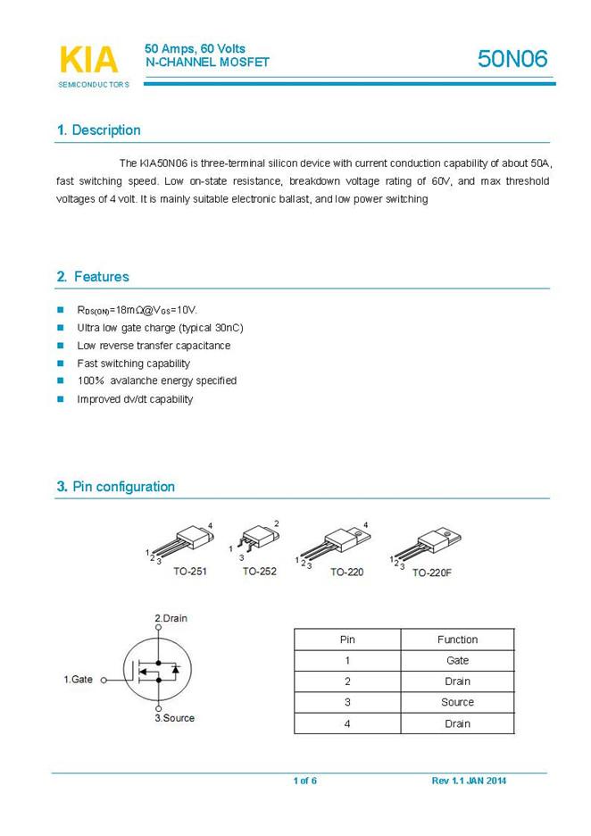 參數: ID(A): 50 BVDSS(V): 60 RDS(ON): 0.23 Qg(nC): 40 Package: TO-220、TO-220F、TO-252