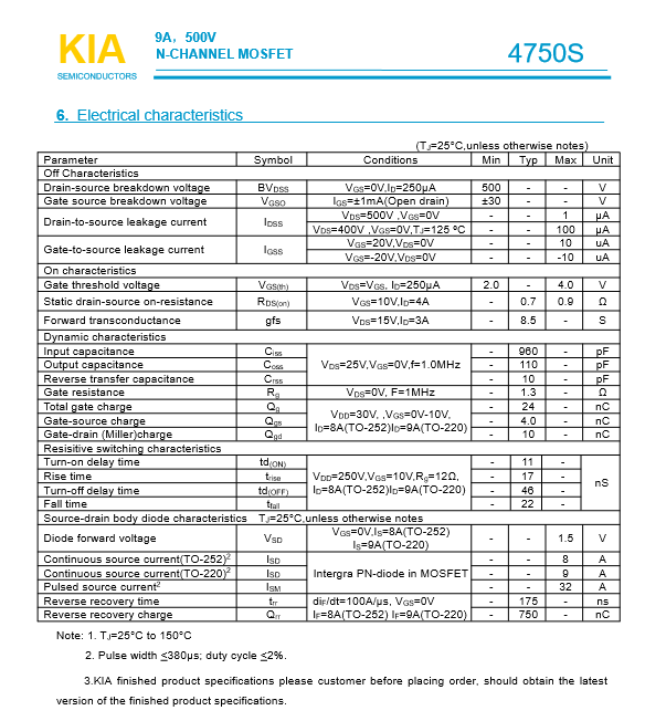 參數(shù): ID(A): 9 BVDSS(V): 500 RDS(ON): 0.7 Qg(nC): 24 Package: TO-252 TO-220