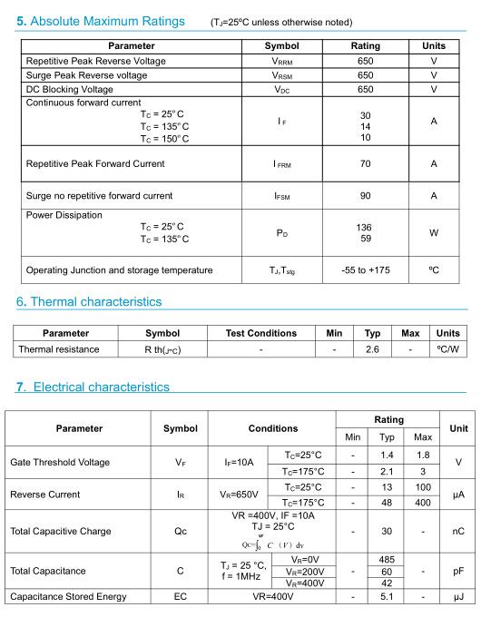 參數: IF(A): 10A    VRM(V): 650V    VF @ IF(V) 25℃: 30A    Package: TO-220-2