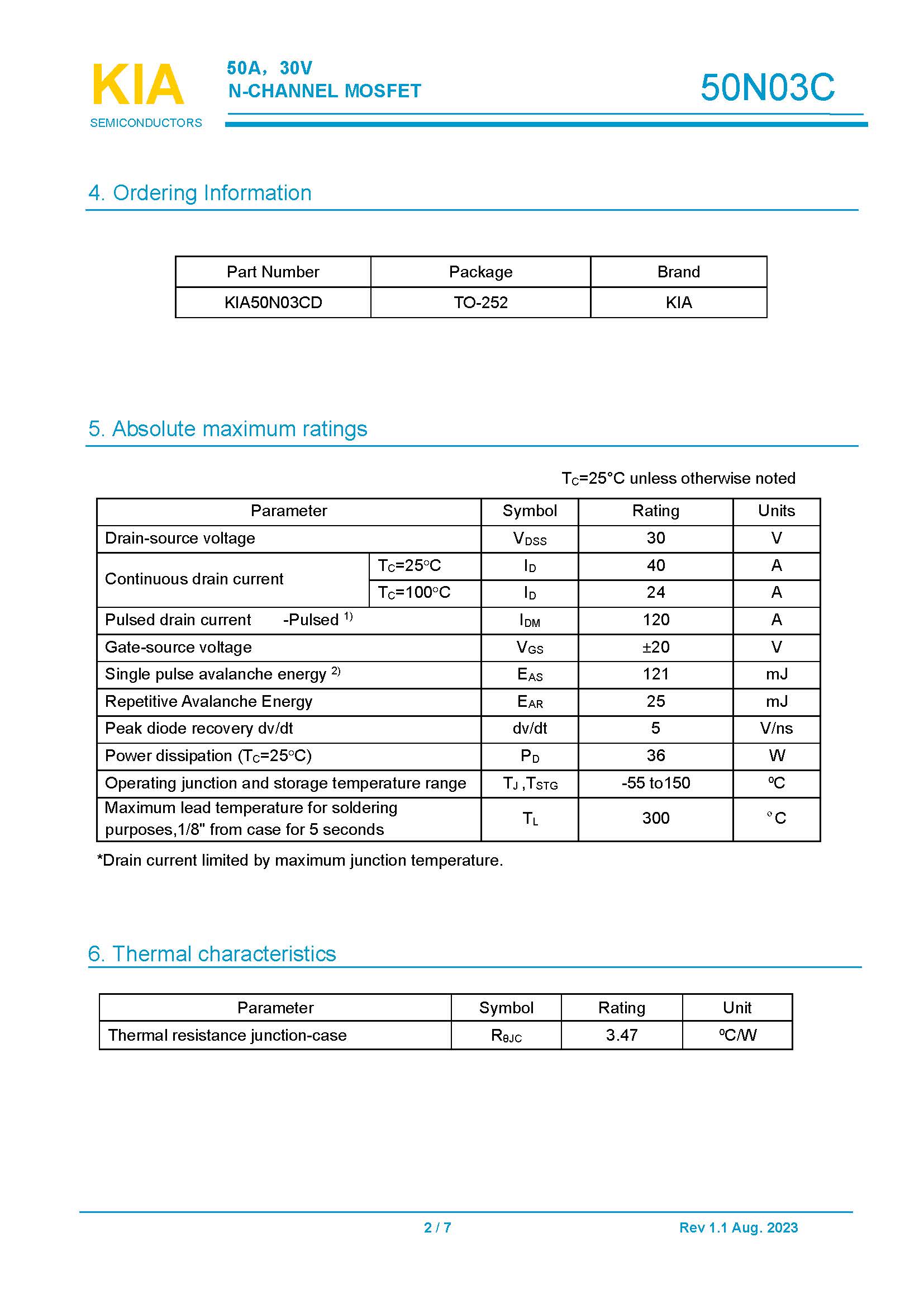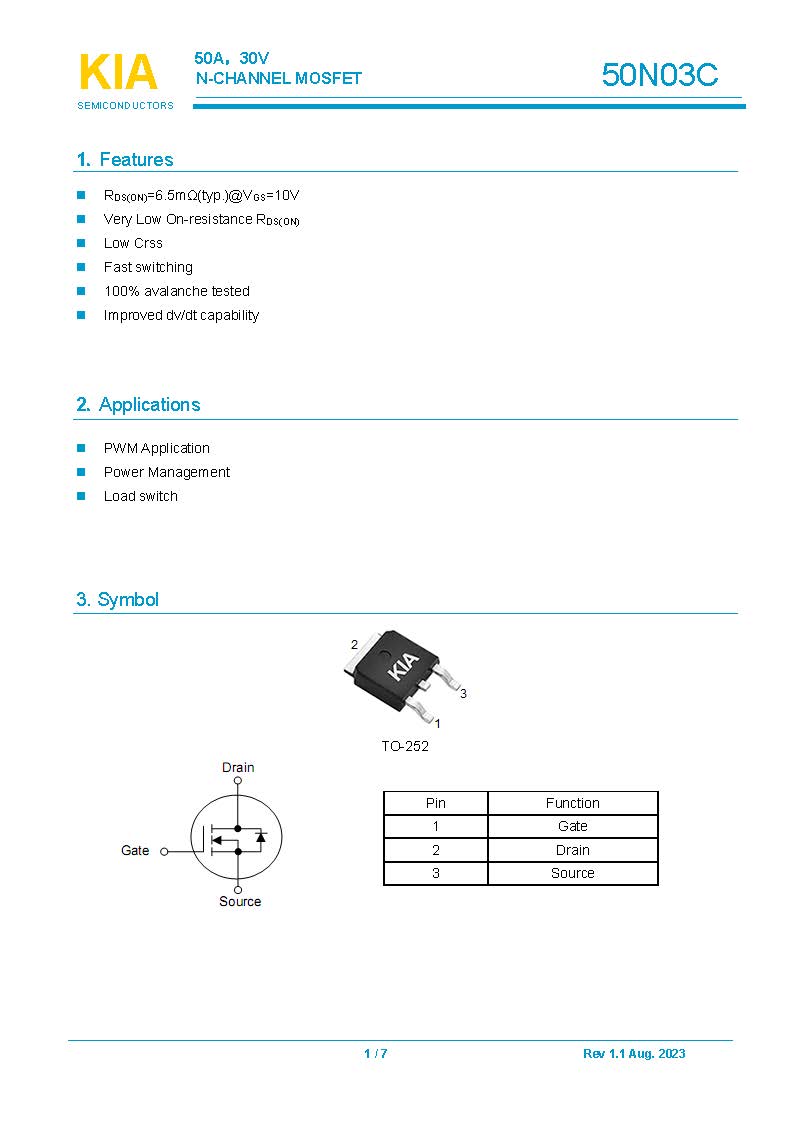 關鍵詞: KIA50N03C