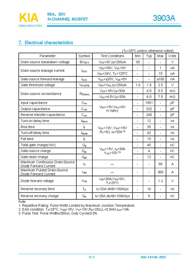 參數: ID(A): 85 BVDSS(V): 30 RDS(ON): 4 Qg(nC): 40 Package: DFN5*6