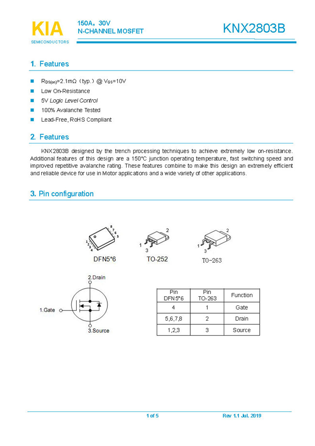 參數: ID(A): 150 BVDSS(V): 30 RDS(ON): 2.1 Qg(nC): 90 Package: TO-252.TO-263.DFN5*6