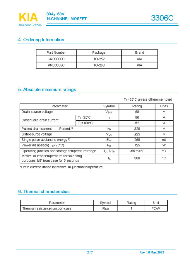 參數(shù): ID(A): 80 BVDSS(V): 68 RDS(ON): 6.5mΩ Qg(nC): 92.6 Package: TO-252/TO-263