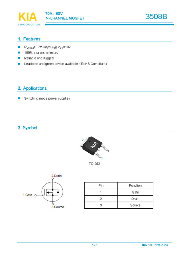 參數(shù): ID(A): 70 BVDSS(V): 80 RDS(ON): 8.7mΩ Qg(nC): 90 Package: TO-252