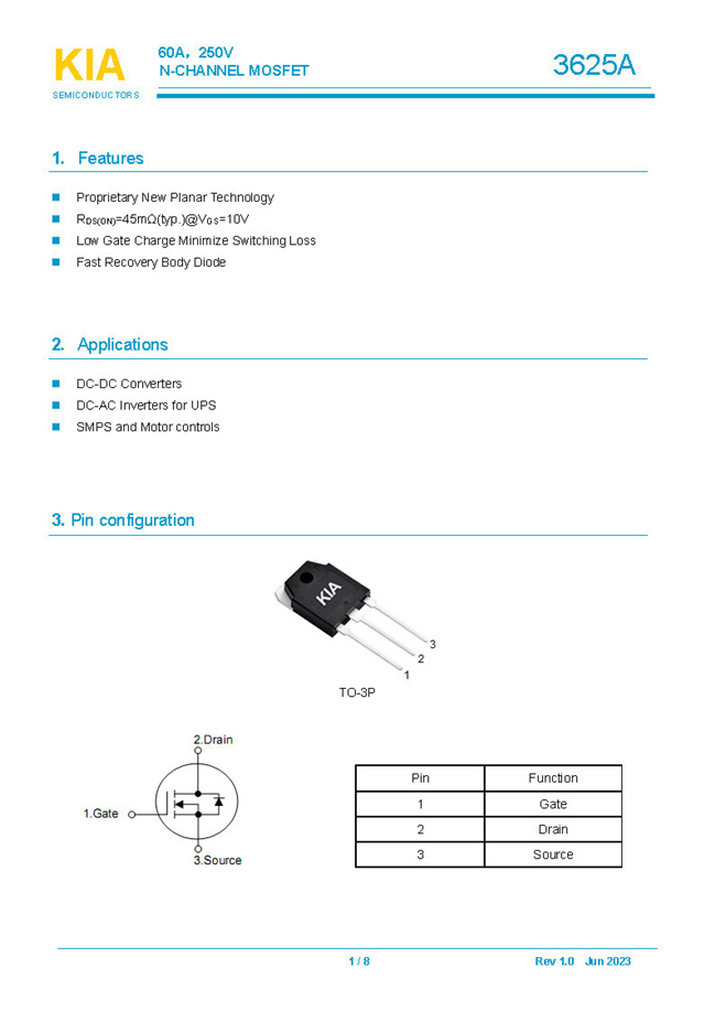 參數(shù): ID(A): 60 BVDSS(V): 250 RDS(ON): 45mΩ Qg(nC): 78 Package: TO-3P