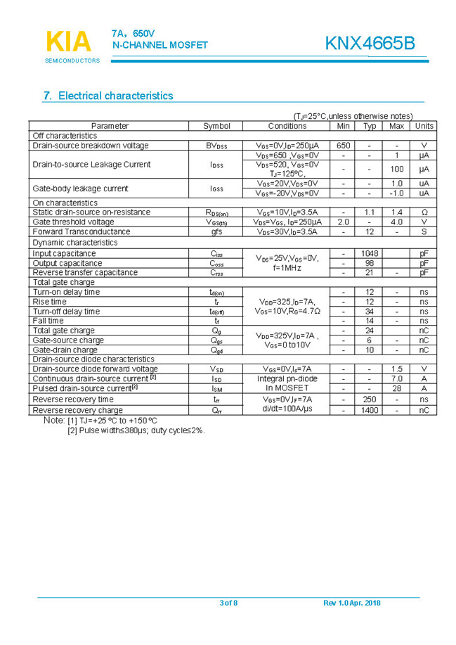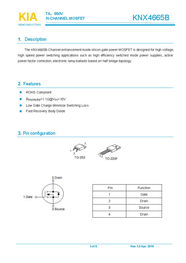 參數(shù): ID(A): 7 BVDSS(V): 650 RDS(ON): 1.1Ω Qg(nC): 24 Package: TO-220F.TO-252