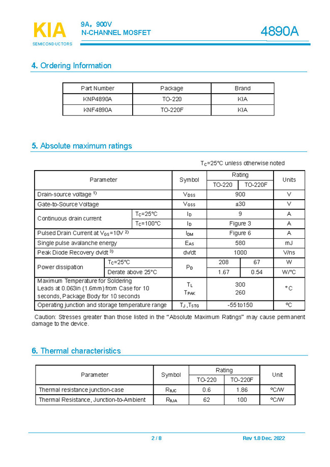 參數(shù): ID(A): 9 BVDSS(V): 900 RDS(ON): 1.2Ω Qg(nC): 48 Package: TO-220.TO-220F