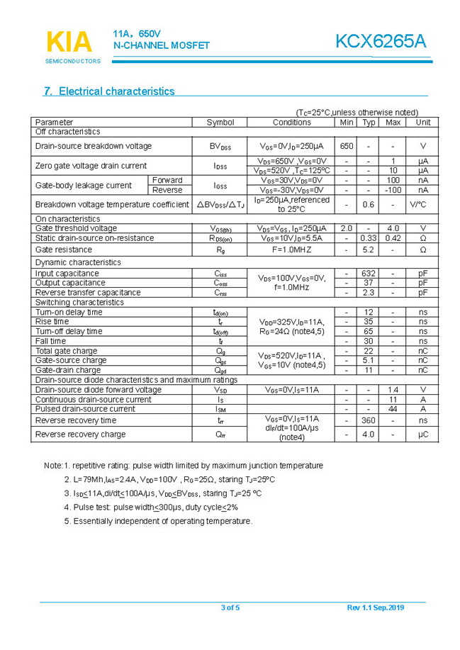 參數: ID(A): 11 BVDSS(V): 650 RDS(ON): 0.33Ω Qg(nC): 22 Package: TO-263、220F